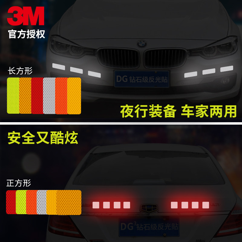 3m Reflective Creative Car Sticker Personality Versatile Body Scratchproof for Waterproof Decoration Patch Fluorescent Night-time Square