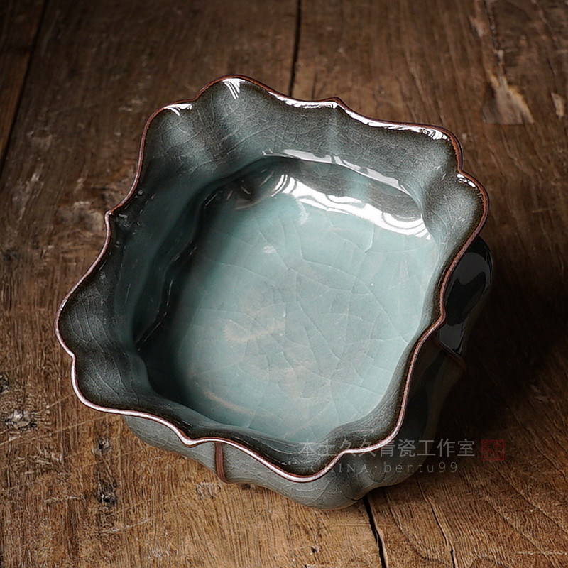 Sun Wenfa Iron Tire Tea Wash Longquan Celadon Ceramic Household Tea Set Tea Ceremony Accessories Slag Bucket Square Waist Wash