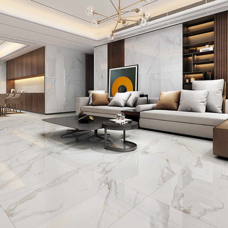 Hongyu Ceramic Living Room Floor Tile Simple Modern Jazz White Marble Tile Wall Tile Snow White HPG80173
