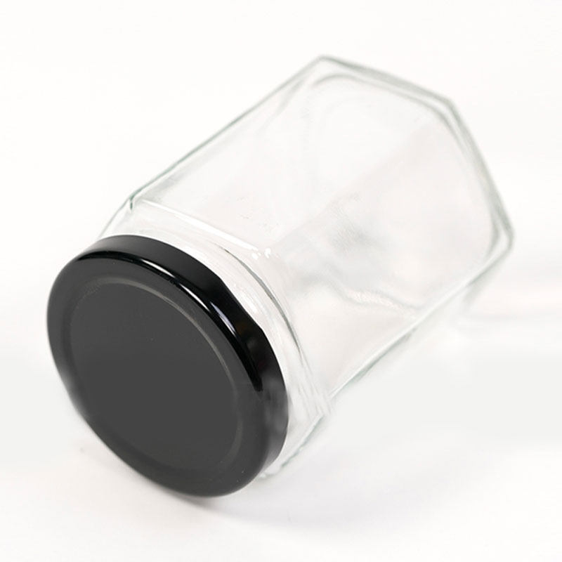 Hexagonal glass bottle Sealed jar 380ml honey pickle bottle handmade sub-bottle with lid transparent glass bottle