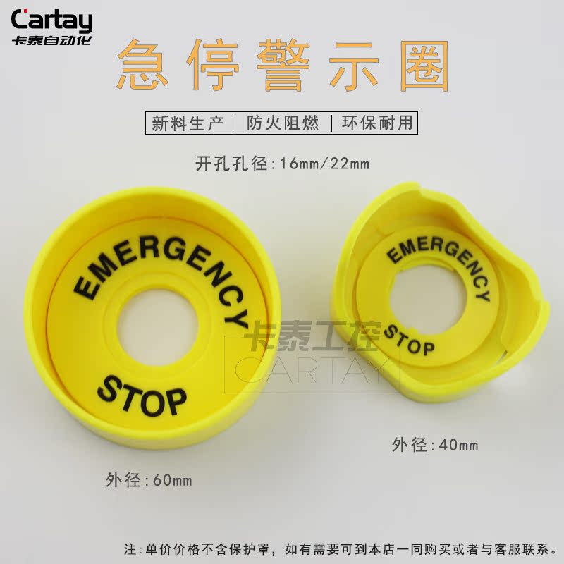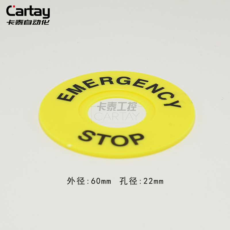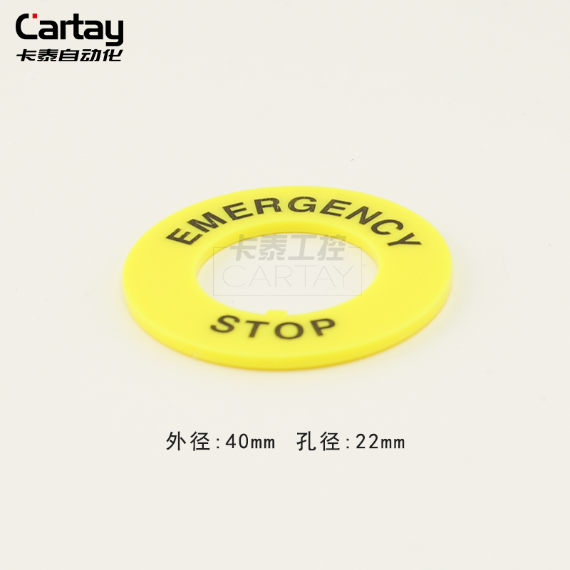 Emergency stop sign button sign ring STOP yellow piece diameter 60 40 aperture 22mm