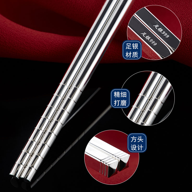 S999 pure silver glossy silver Chopsticks Foot Silver Thicken for Home Practical use Chopsticks Cutlery Adult children Chopsticks Gifts