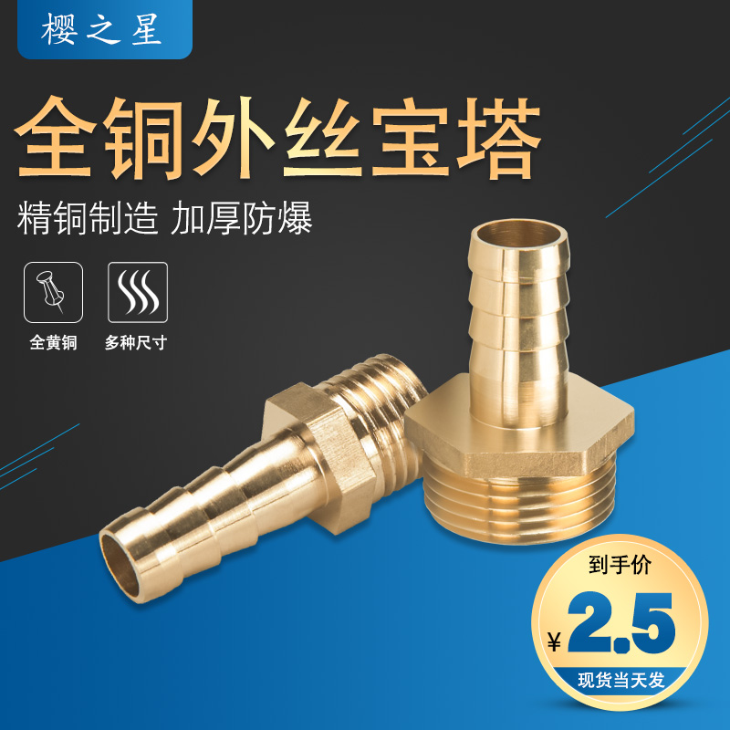 Thickened 3-6 full copper Outer dental pagoda outwire Direct gas hose Greenhead Quick-inserted gas nozzle connector