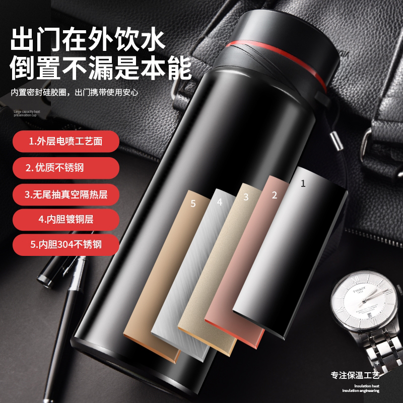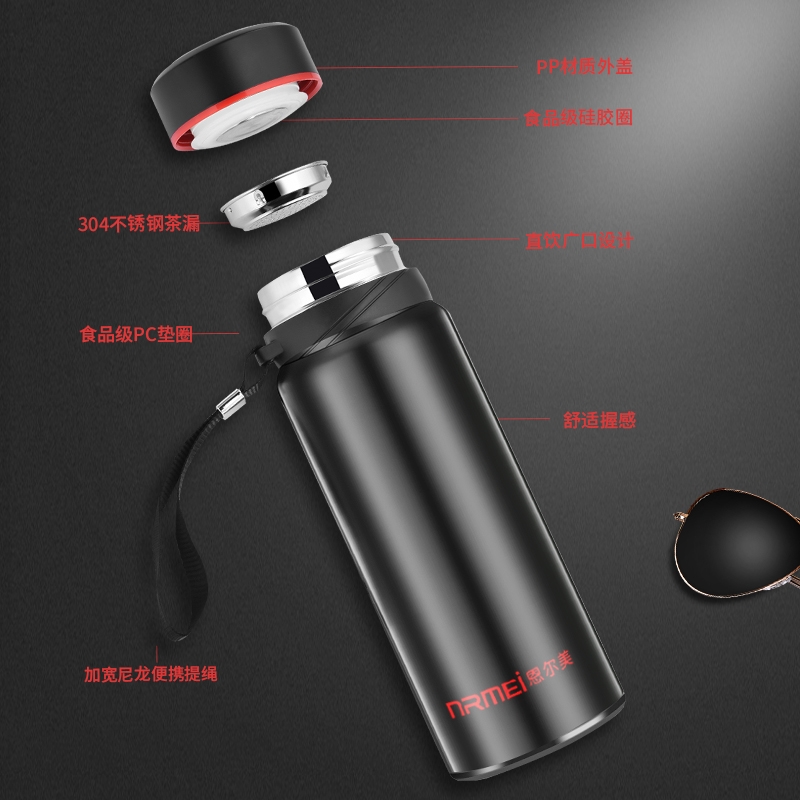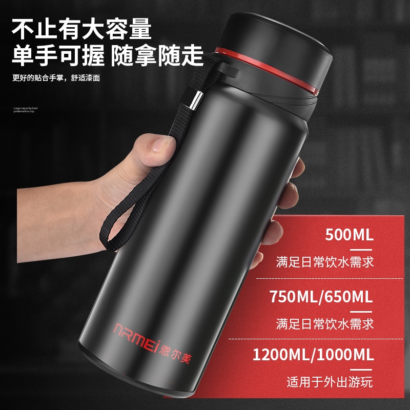Large capacity 304 stainless steel thermos cup Men's large kettle portable personal tea cup water cup 1L