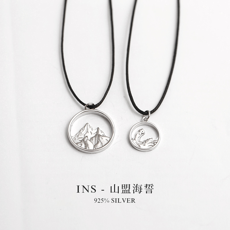 All Love Septualpine Sea Can Be Flat 925 Silver Lovers Necklace A Pair Of Love Letters Pendant Men and women Long-distance Romance Gifts