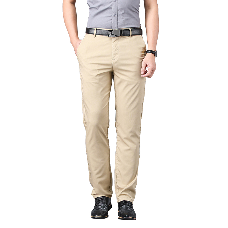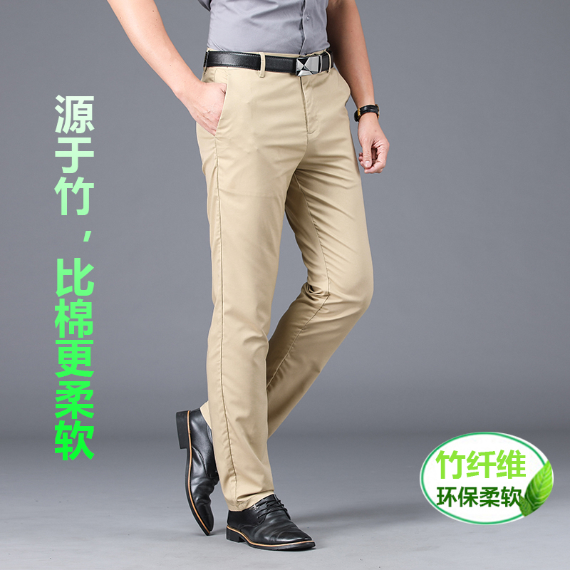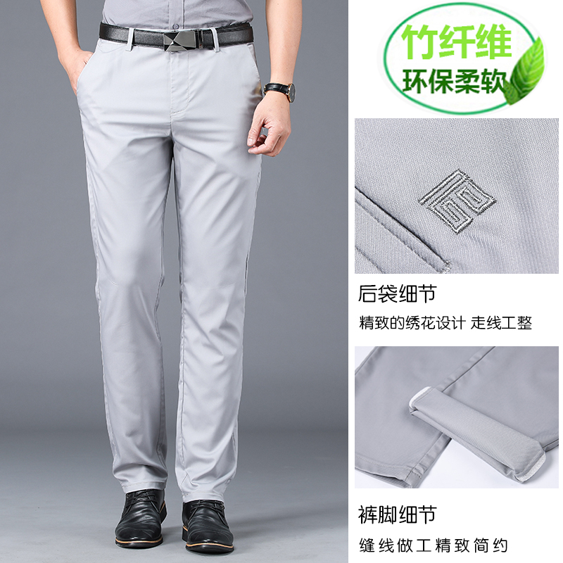 Summer thin casual pants men's elastic trousers loose straight business high-end bamboo fiber middle-aged dad trousers