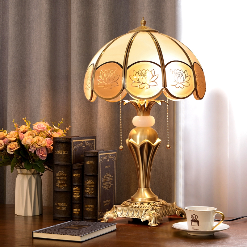Bedroom Table Light Wedding Eu Style New House Cozy Bedside Net Red Light Lavish Retro Antique Full Copper American Home Living Room Creativity