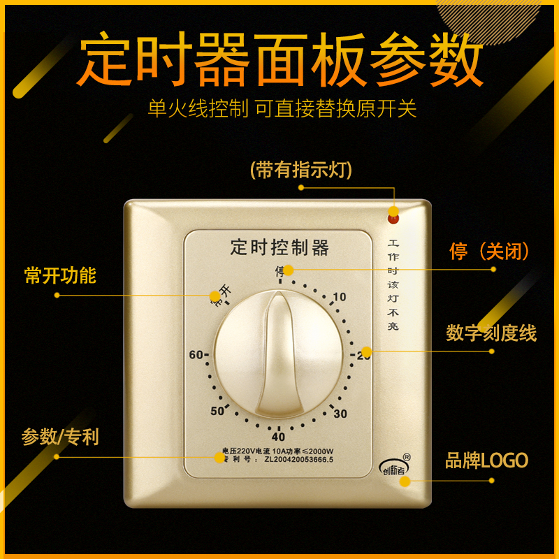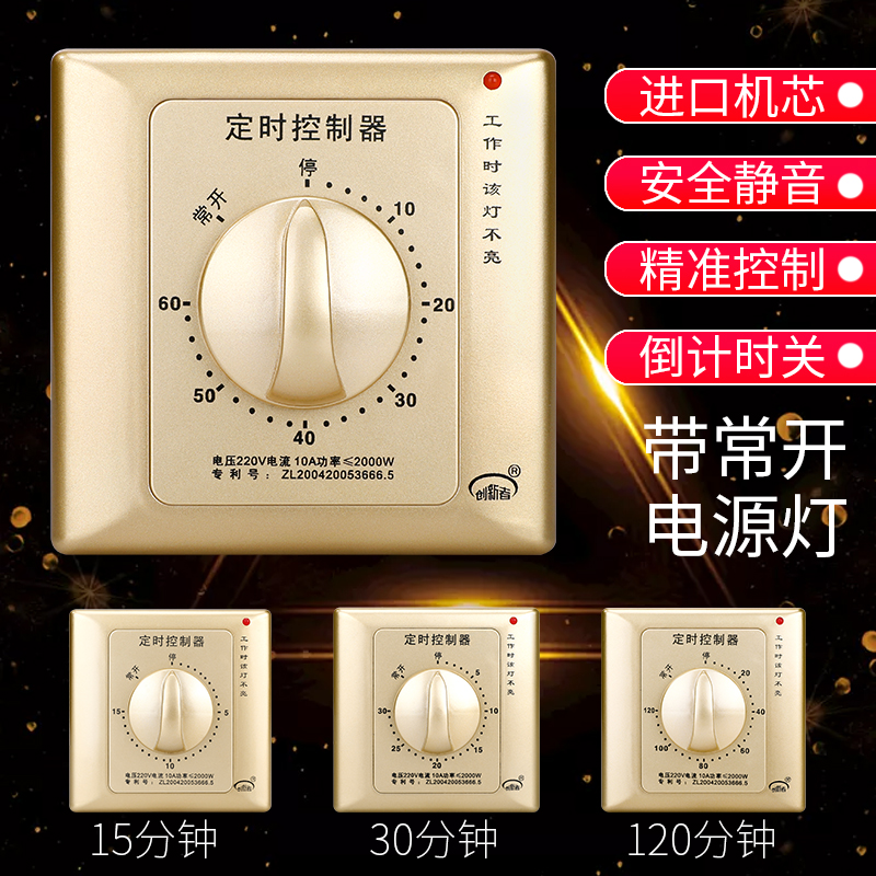 Champagne Gold Timing Switch Controller 220v Countdown Automatic Power Cut Mechanical 86 Type Water Pump 60 min