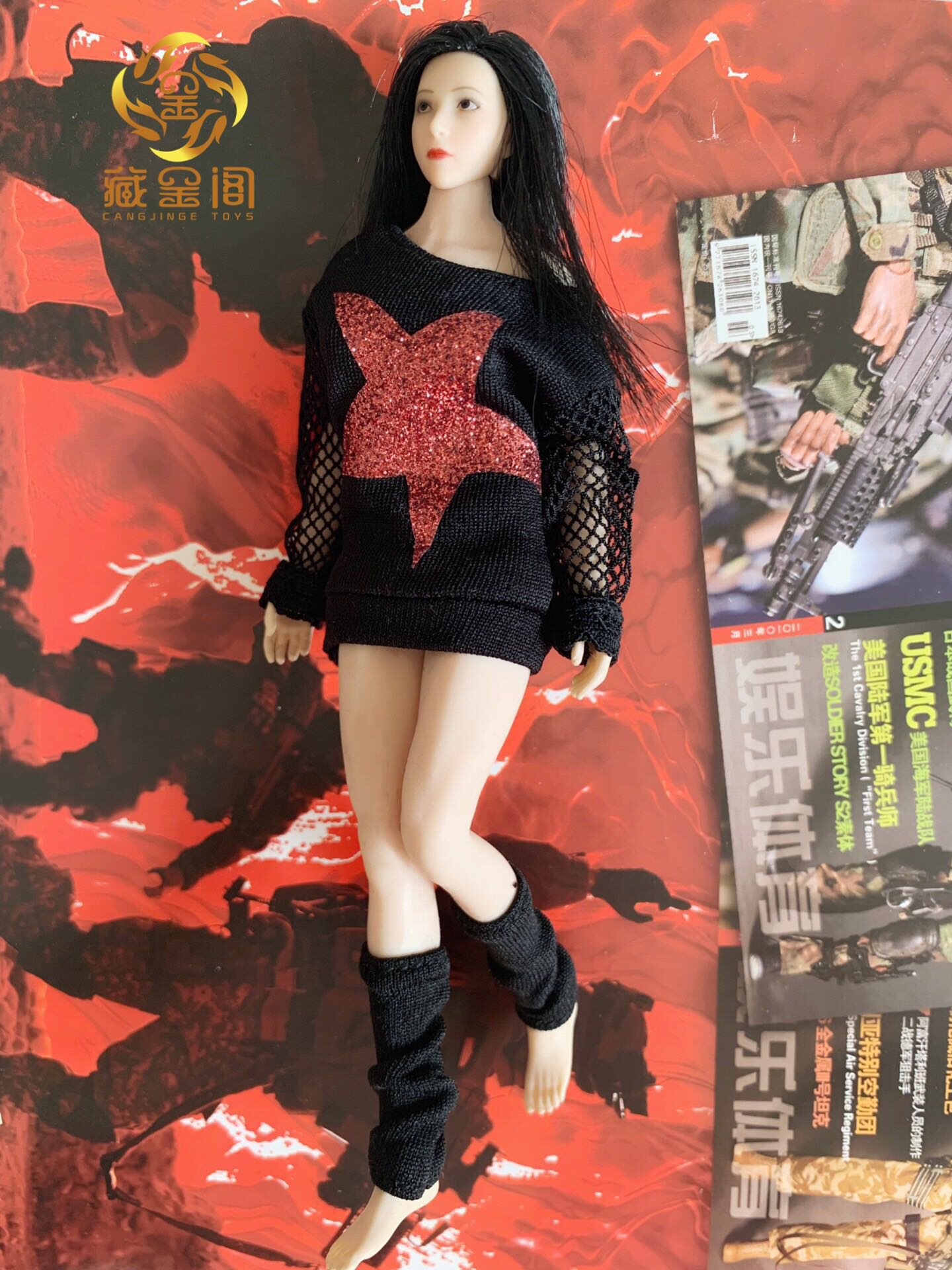 1 12 Female Soldiers Black Knit Clothing Suit Academy Wind Knitted Sweater Spot