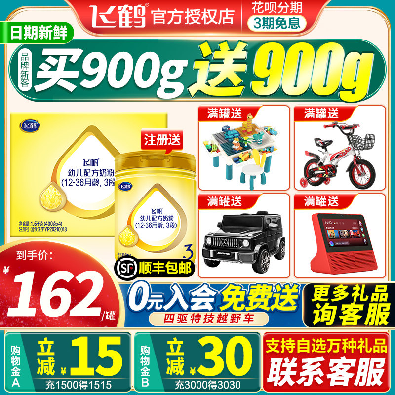 Register for delivery of 900g large cans) flying crane Milk Powder Flying Sail 3 Paragraphs Toddler Milk Powder 400 * 4 Bag Four Kits 1600g Boxes