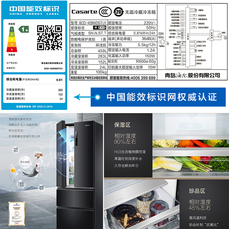 Casarte Casarte BCD-459WDSTU1 ultra-thin embedded variable frequency frost-free smart refrigerator household