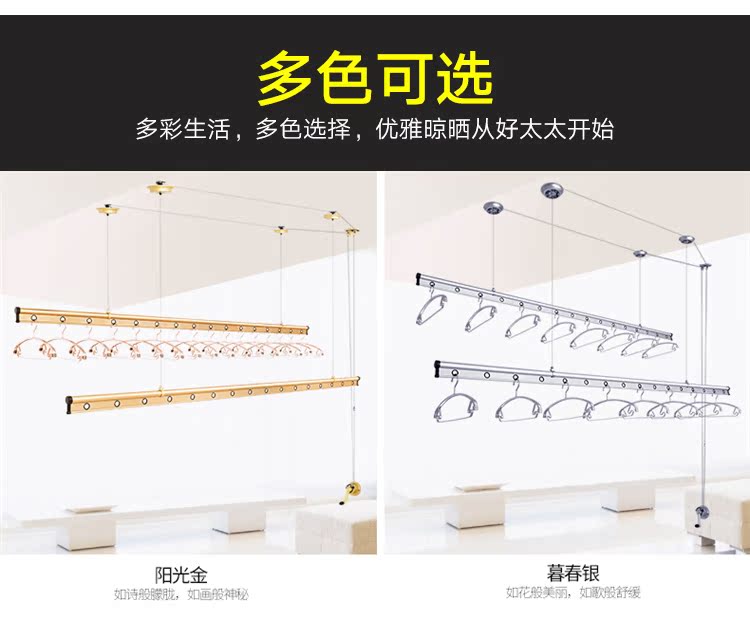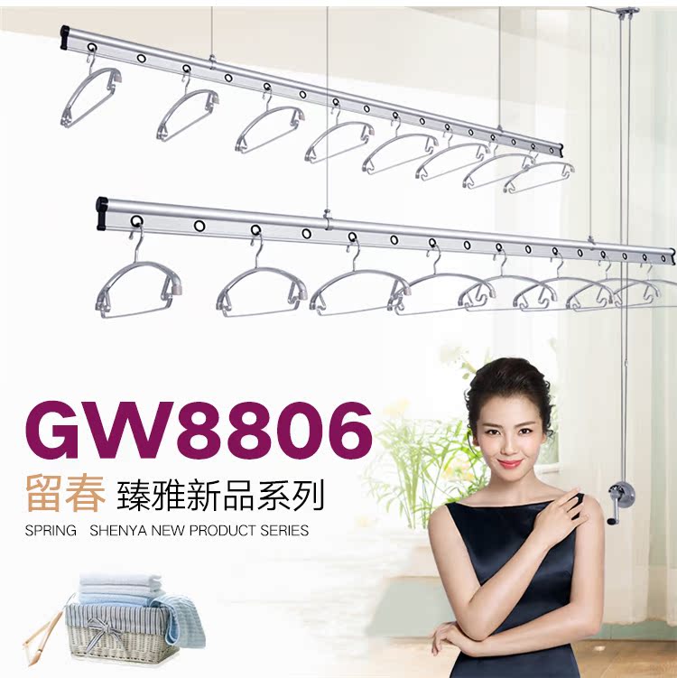 Good lady drying rack hand rod lift double rod indoor balcony stainless steel drying rod household intelligent error correction