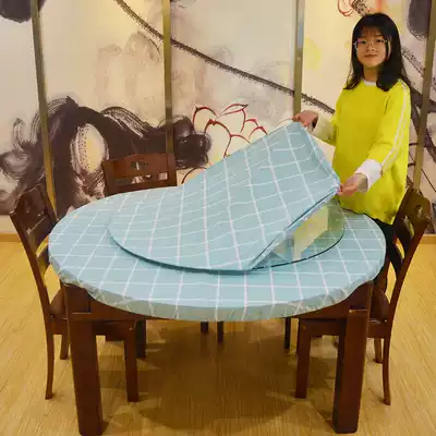 Round tablecloth waterproof and oil-proof disposable table cover turntable set household PVC anti-scalding round table mat tablecloth matching non-slip
