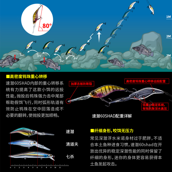 DNE go to Luya speed diving SHAD long tongue plate Mino mandarin fish bass fishing bottom deep water slow floating Jedi bait