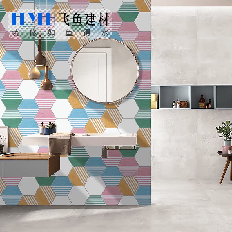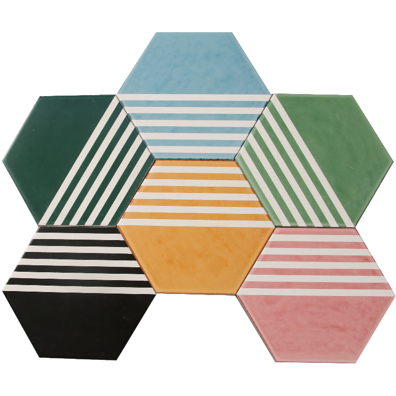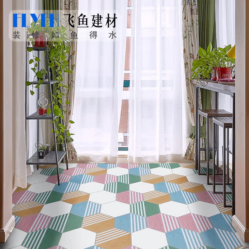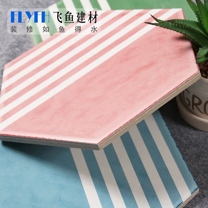 Nordic Wind Hexagon Brick Ink green pink strip hexagonal balcony anti-slip floor tiles Kitchen Bathroom Background Wall Flower Brick