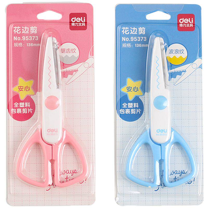 Deli lace scissors pattern photo scissors Handmade diy Children's safety simple wavy wire saw teeth Kindergarten art art Hand account Baby shape scissors flower teeth Flower gear set