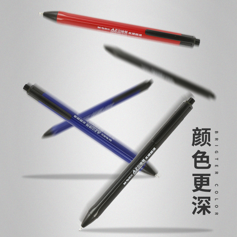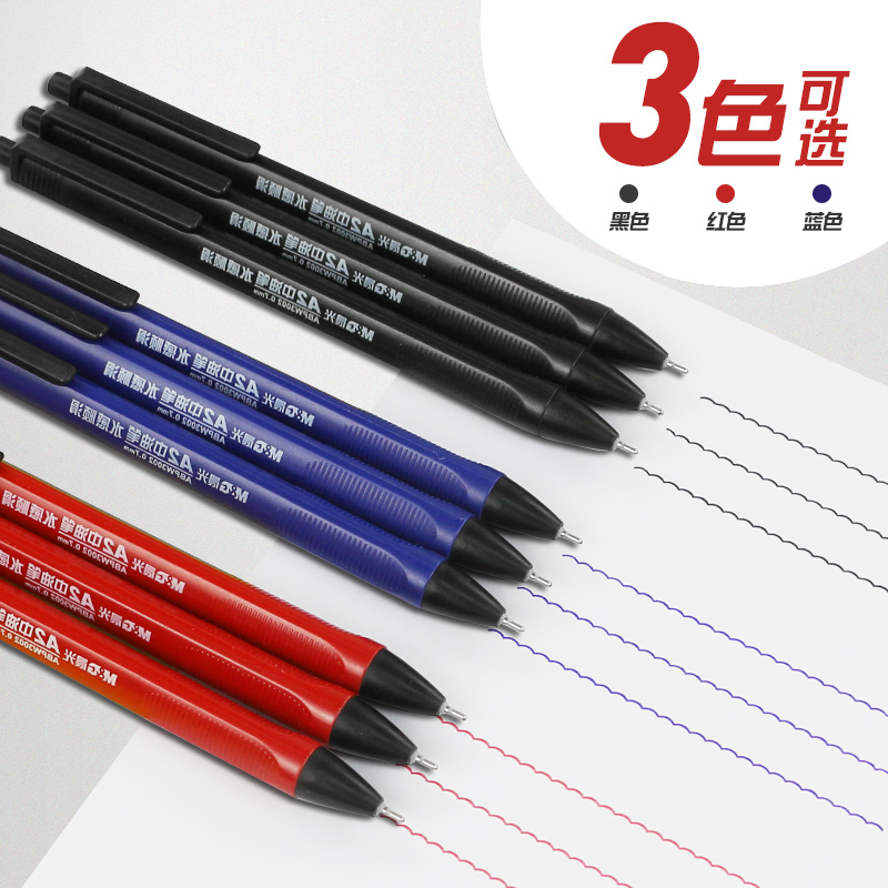 M&G Ballpoint Pen Pressing Type A2 Oil Pen Water Sense Smooth Bead Red Blue Black Red Refill Student Press Special Elementary School Atomic Oil Pen with Office Automatic 0.7mm Round Red Pen