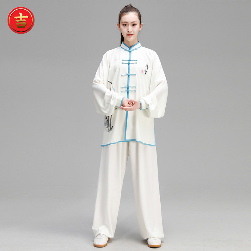 Spring and summer tai chi clothes female white training clothes Chinese style morning training competition clothes three-piece tai chi performance clothes