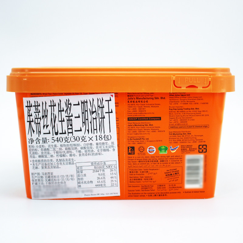 Malaysia imported julies Judith sandwich biscuit cheese sandwich peanut butter zero food gift box