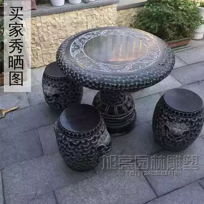 Antique stone table stone bench courtyard outdoor stone table and chair villa garden high-end home carved blue stone table Stone tea table