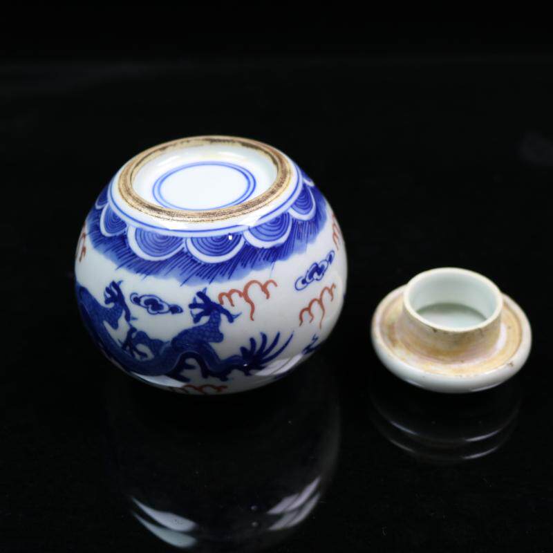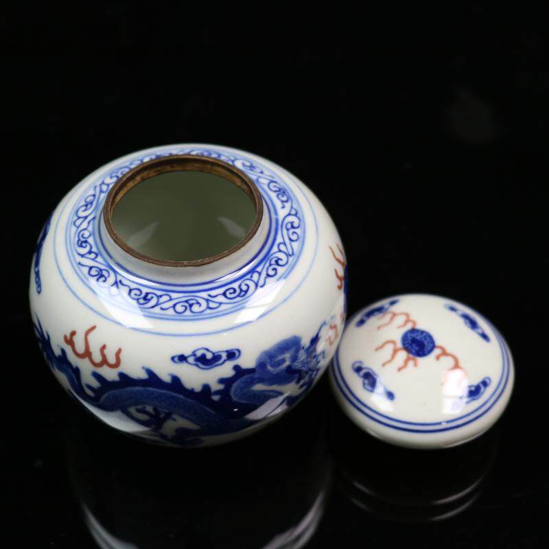 Jingdezhen factory goods imitation ancient pure hand hand-painted green flower glazed with red double dragon drama pearl small cover jar tea leaf jar ancient play