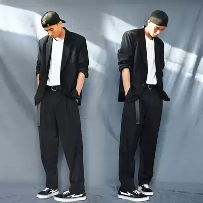 ins straight men's extended trend trousers fall feeling wide leg pants suit Daddy 190 height pants tall man