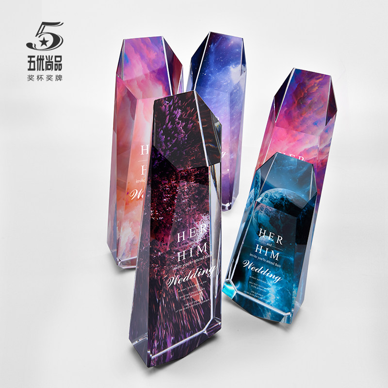 Color Color Series Crystal Trophy Customized Creative Trophy Personalized Engraved Graduation Trophy