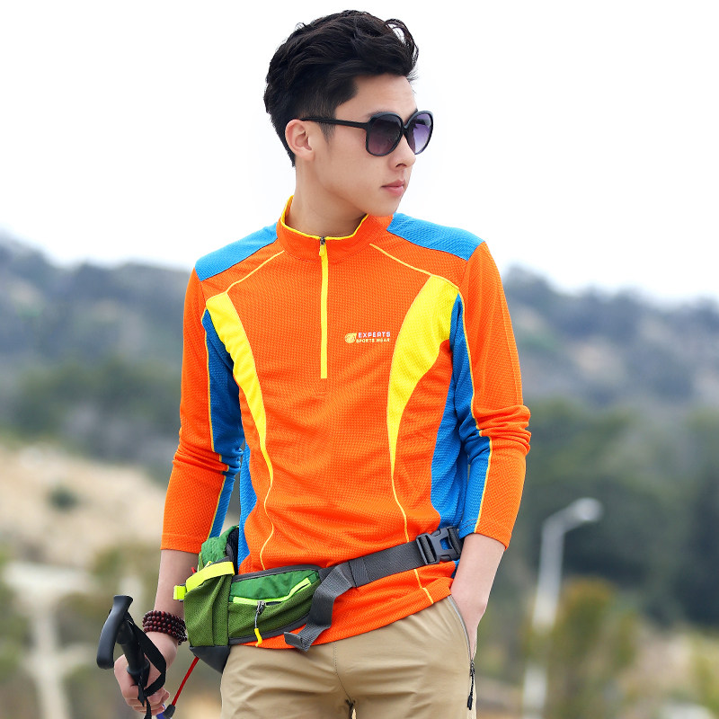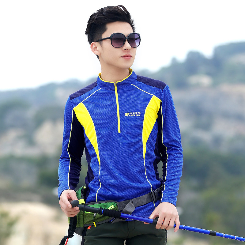 Outdoor quick-drying clothes men's spring and summer stand-up collar trend quick-drying light breathable sunscreen quick-drying T-shirt long sleeve hiking