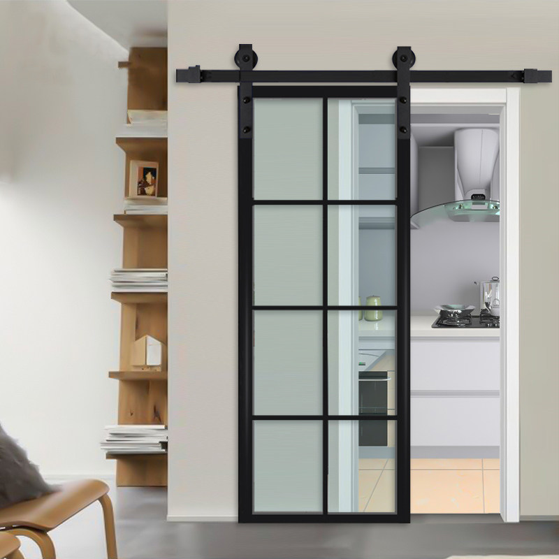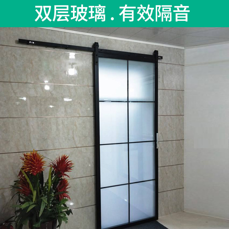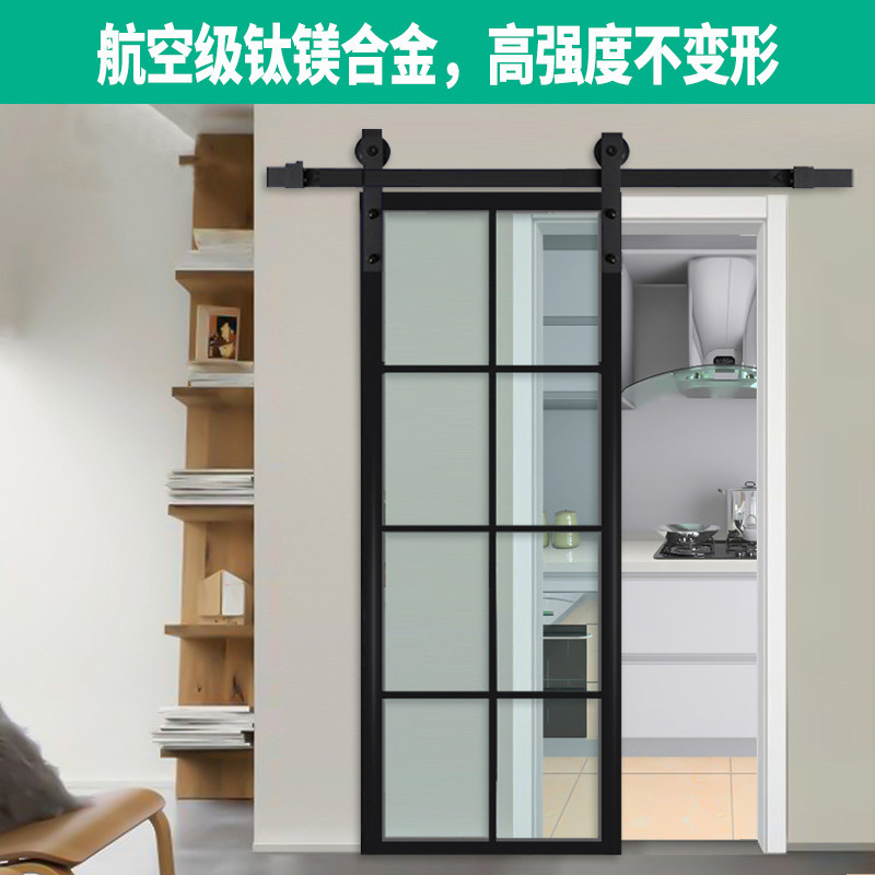 Nordic Barn Door Titanium Magnesium Alloy Door Narrow Rim Glass Ramen Dressing Room Kitchen Partition Hanging Slip Door