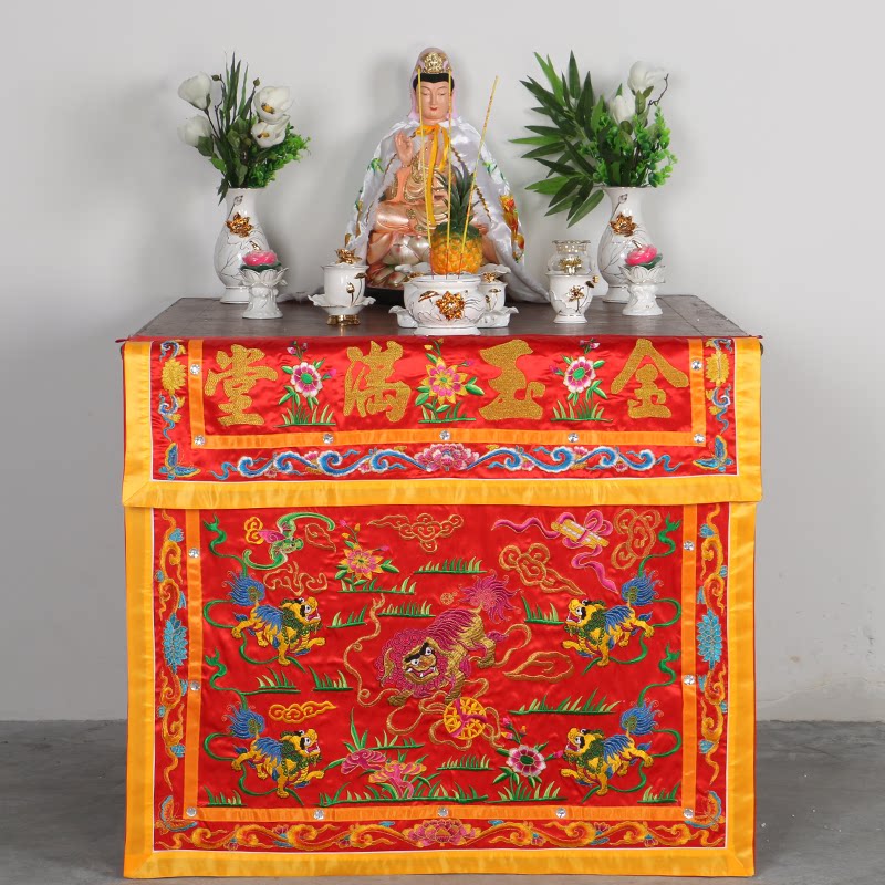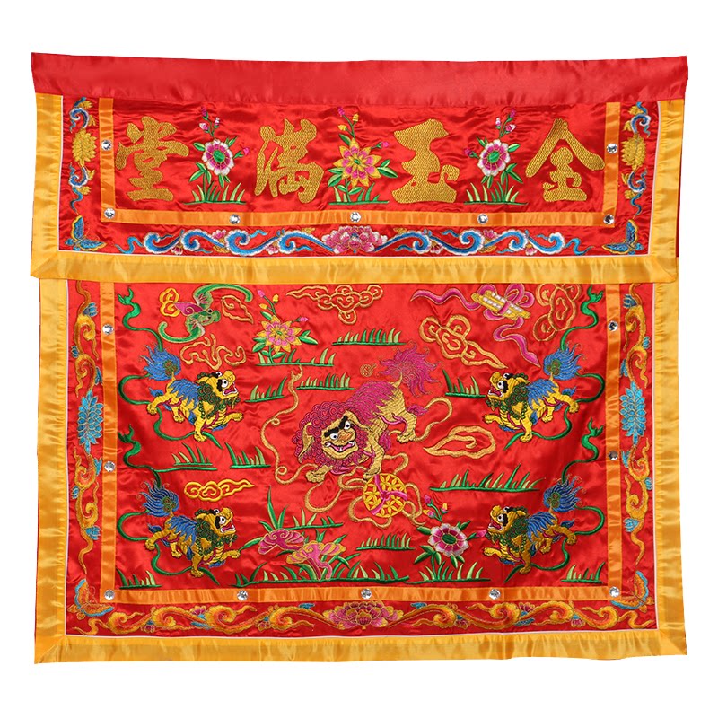 Table circumference embroidery Gold Jade Mantang Shiyang Putian five Lions table embroidery housewarming wedding Buddha tablecloth for table enclosure