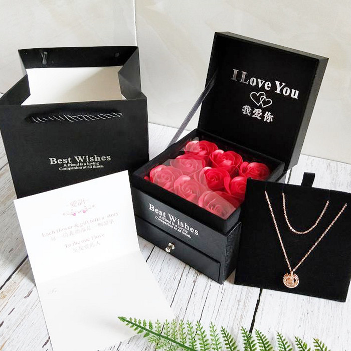 Rose Gift Box Dark Grey Necklace ROSE GIFT BOX DEEP GREY SINGLE MOUTH RED Rose Gift Box Deep Grey ring or earneyed Rose Gift Box Pink Necklace ROSE GIFT BOX