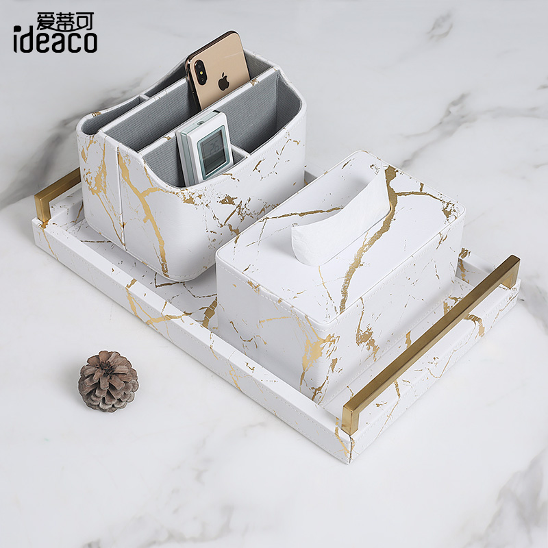 Nordic light luxury black gold marble leather home tray Creative living room model room Rectangular cup tray