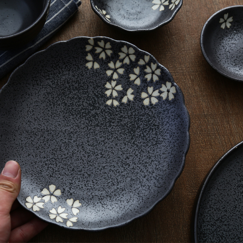 Porcelain heart square Man dance White cherry blossom Japanese ceramic tableware set Household bowl and plate set Bowl and plate set Bowl and plate combination bowl and plate