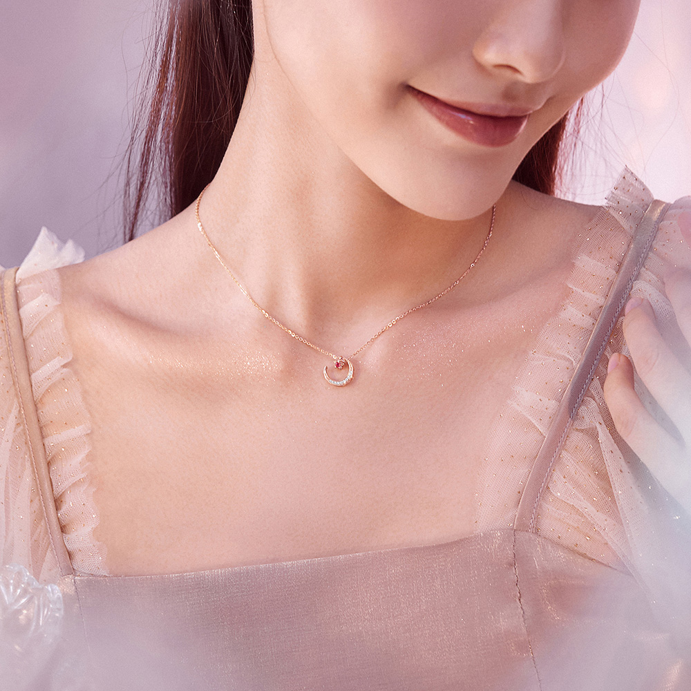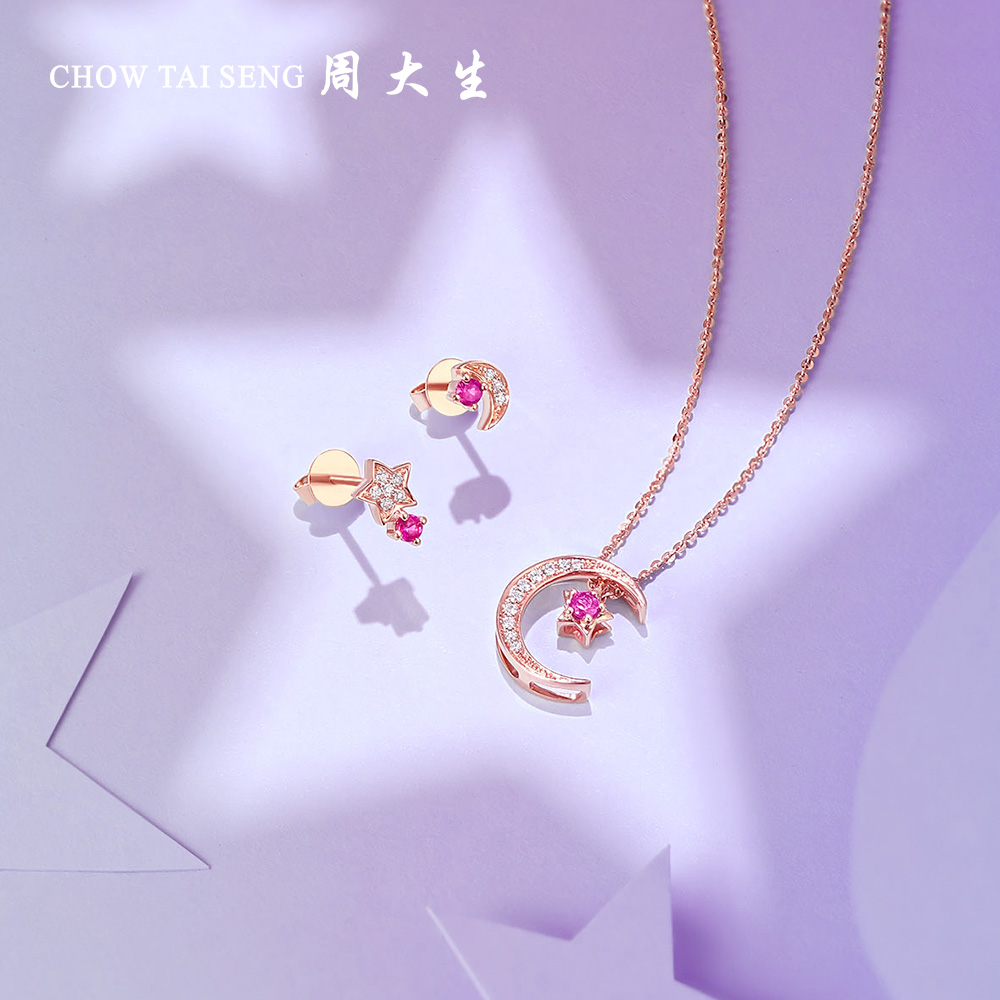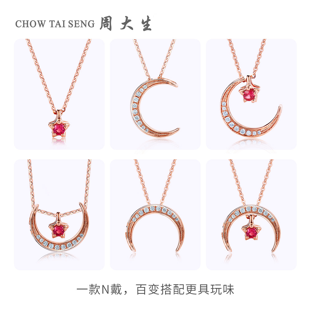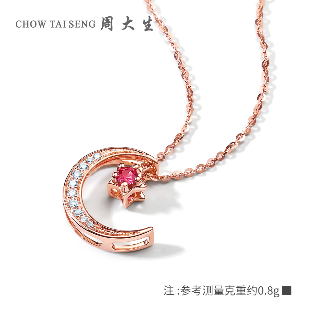 Chow Tai Sang Diamond 18K Gold Pendant Ruby Pendant Star Moon Pendant Star Moon Can be matched with necklace woman
