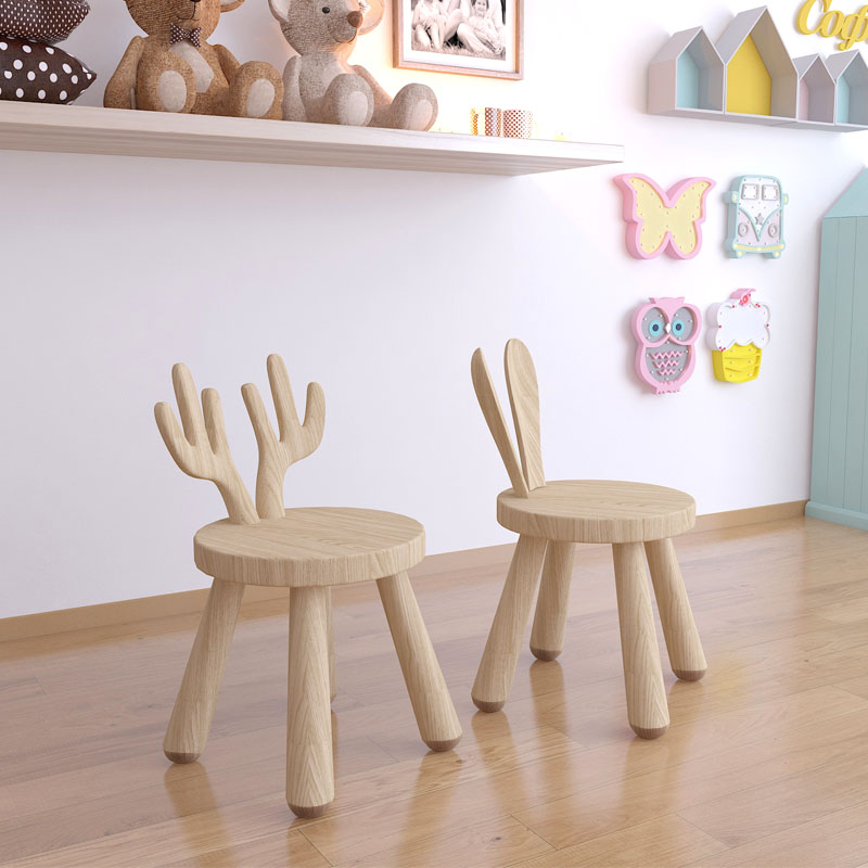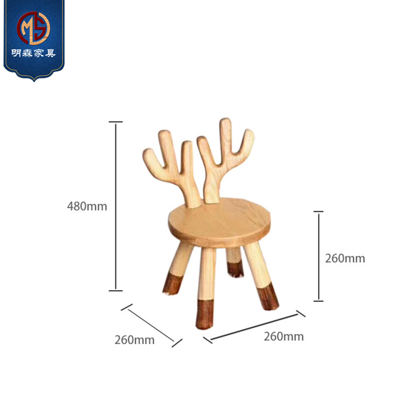 Children's small stool Living room Home Creative cute baby wood short stool Full solid wood minimalist New Chinese with backrest
