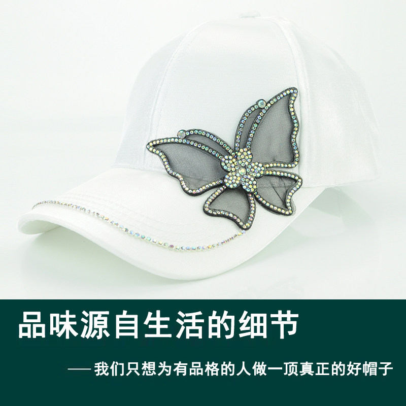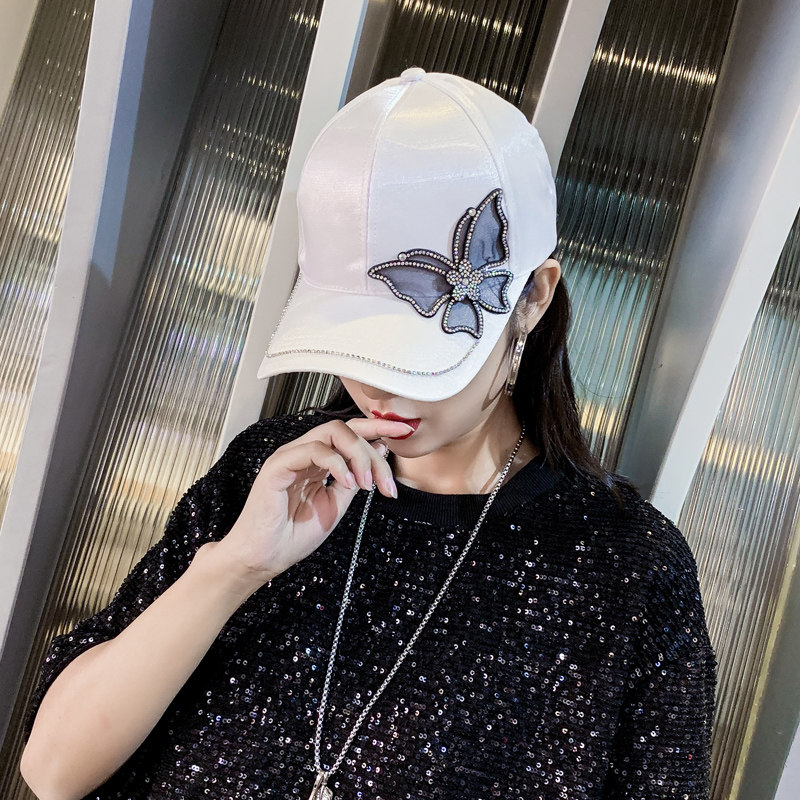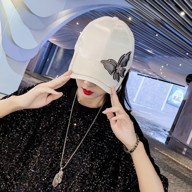 Hat female Korean version tide all-match net red peaked cap winter fashion butterfly drill sunshade hat spring and autumn baseball cap