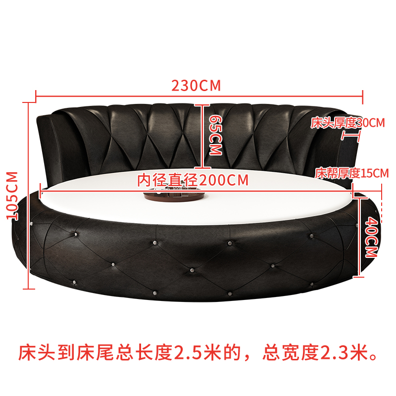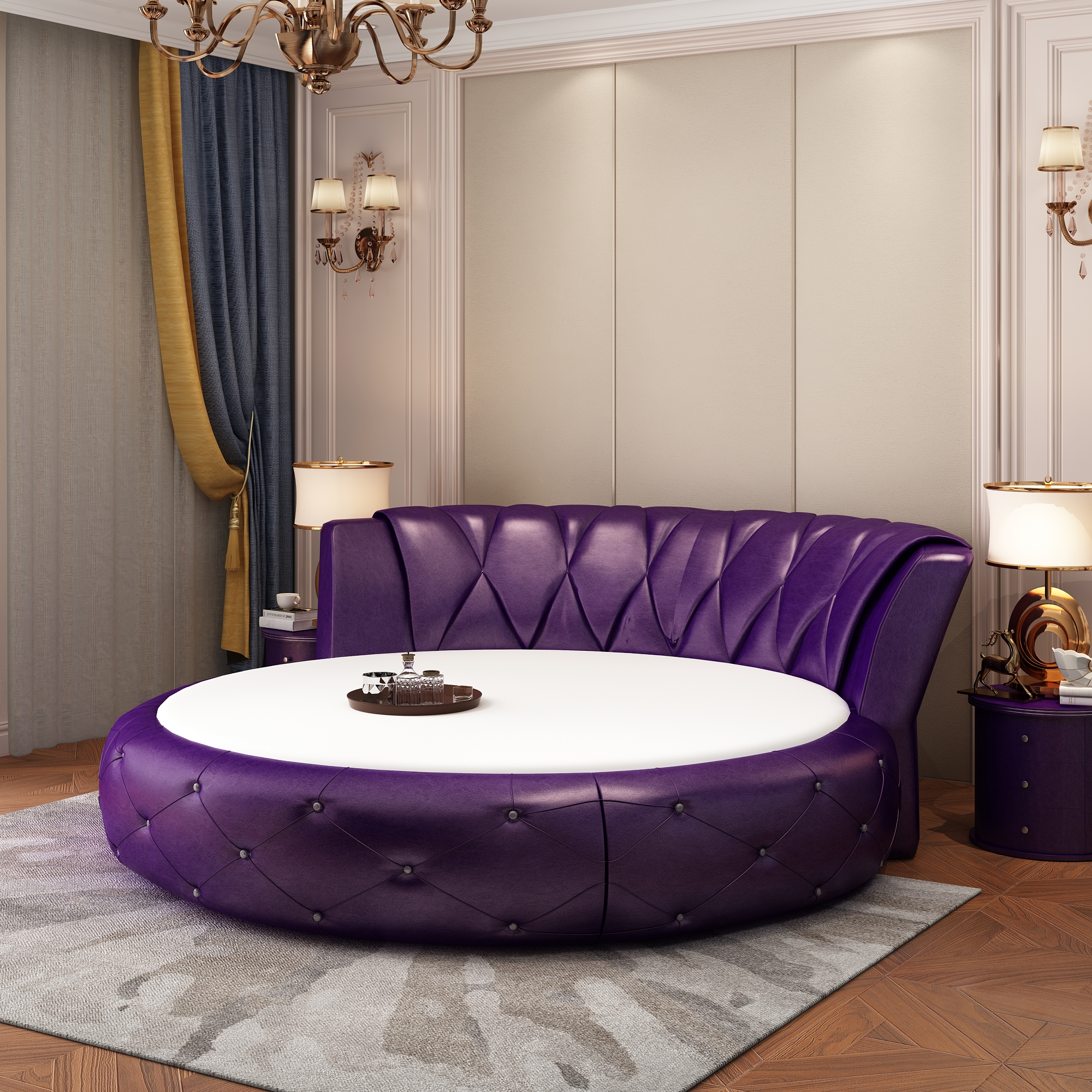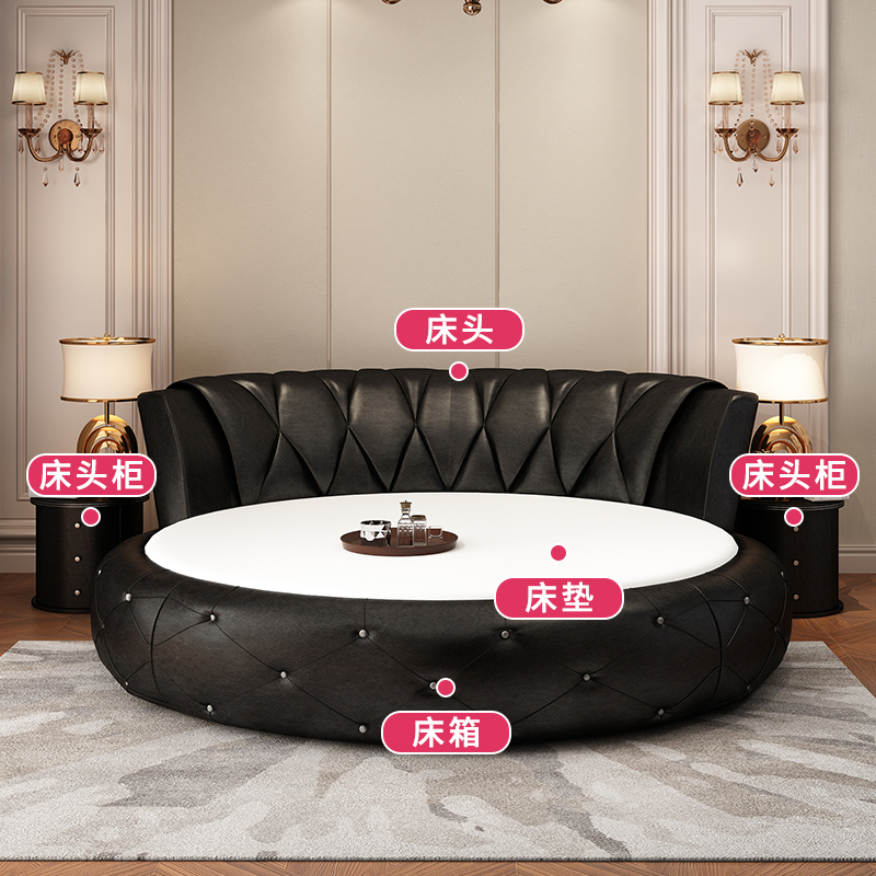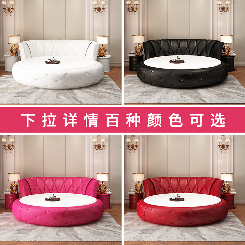 Large round bed double bed wedding bed princess bed European style master bedroom couple electric leather bed hotel net red fabric bed