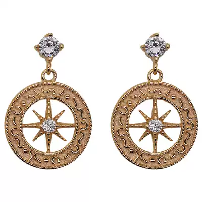 925 sterling silver compass star stud earrings personality creative design girl zircon exquisite sweet Korean earrings