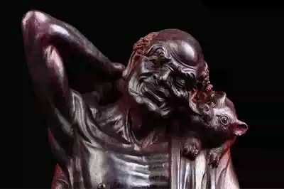 Indian small leaf red sandalwood knife hand-carved wood carving dedicated to Buddha statue living room porch large root carving agarwood ornaments