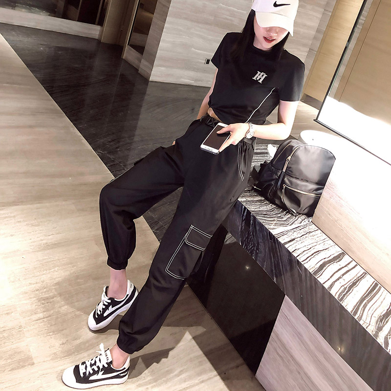 Summer 2021 New Hong Kong flavor fashion two-piece Net red leisure sports overalls women tide ocean hip hop set