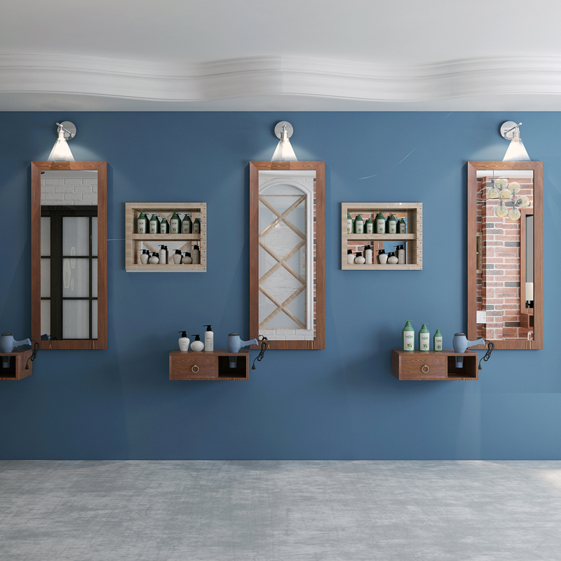 Solid wood mirror table retro hairdressing-shop single-sided mirror table wall-mounted beauty salon floor test hair salon mirror doing old