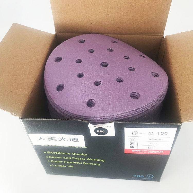 Big Beauty Light Speed 6 Inch 17 Hole Grinding Machine Sandpaper Flocking Round Pneumatic Dust-free Atomic Ash Polished Sand Leather 150mm