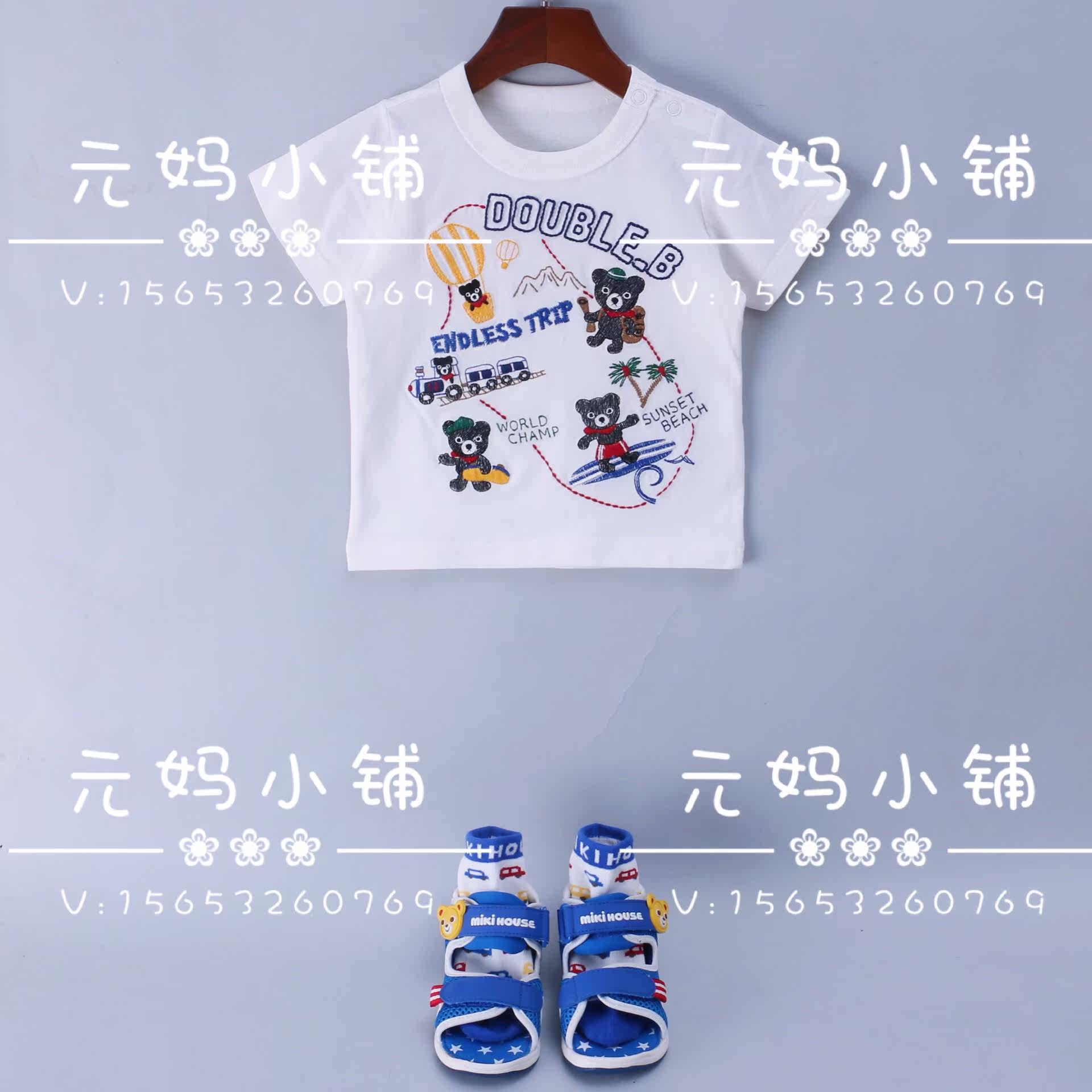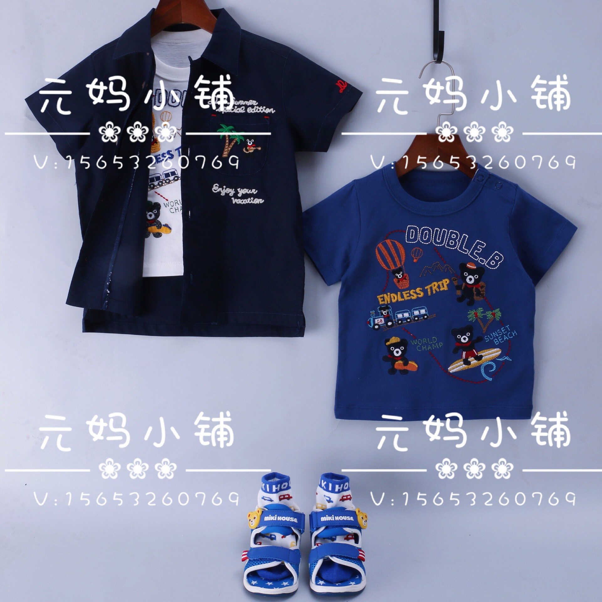 miki children's clothing 2021 new summer style male treasure cartoon black bear overhill car embroidered pure cotton shirt short sleeve