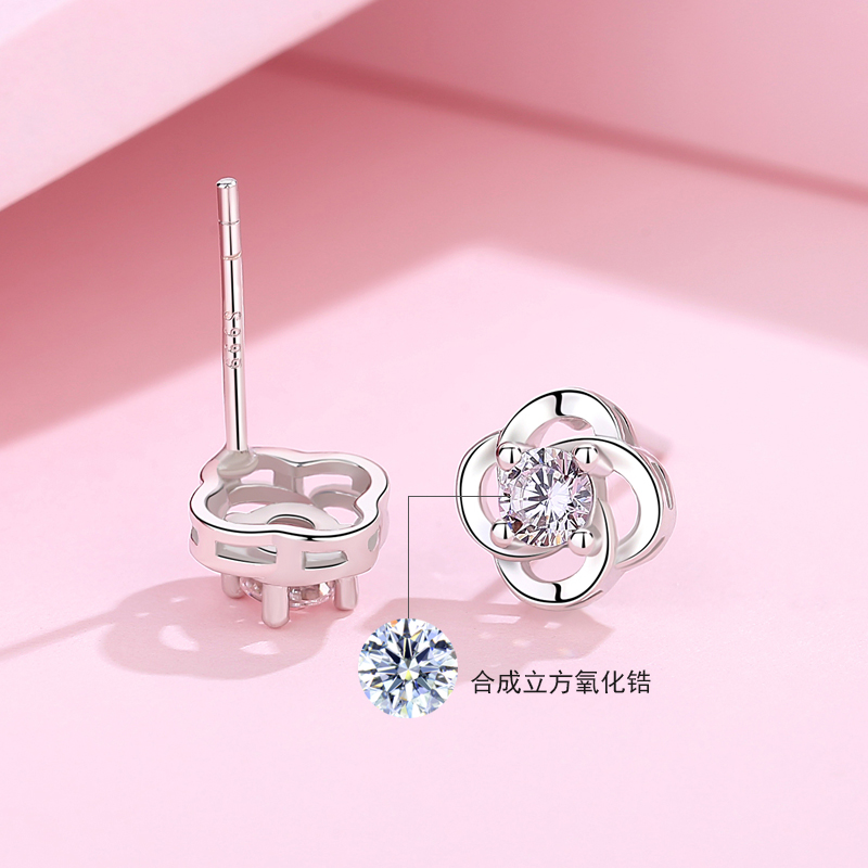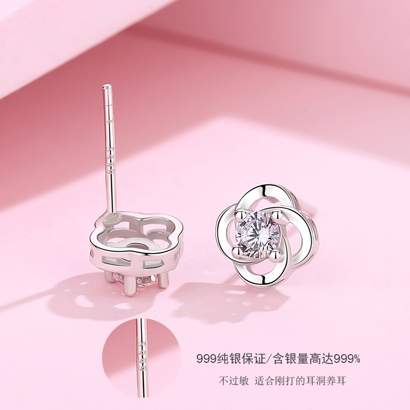 999 sterling silver rose stud earrings (send certificate) 999 sterling silver rose stud earrings (temperament blue diamond) (send certificate) 999 sterling silver rose stud earrings (cherry pink diamond) (send certificate)