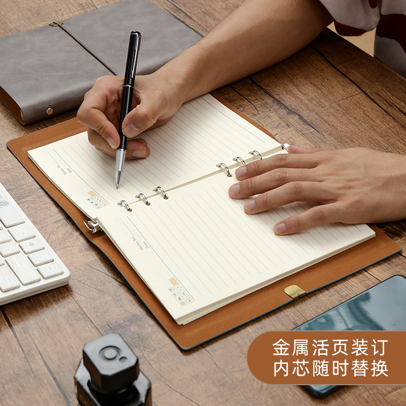Notebook simple college student A5 loose-leaf book detachable business B5 soft leather retro notebook Literary exquisite grid notebook diary Office gift custom LOGO