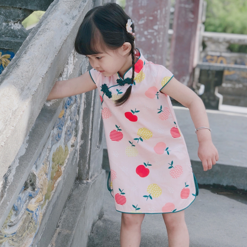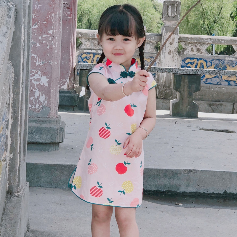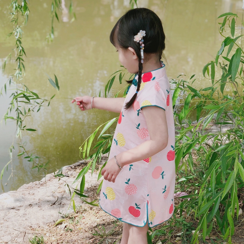Narro Girl China Wind Dress Summer Baby Medium Long Version Qipao Children Hanfu Cute Country Princess Dress