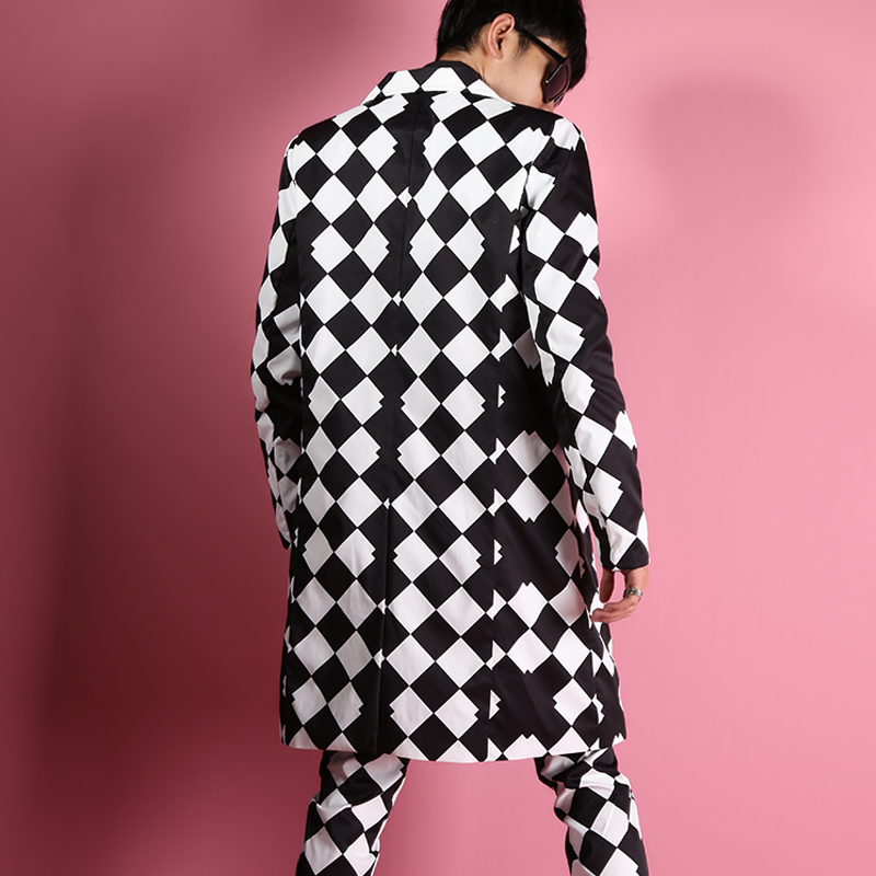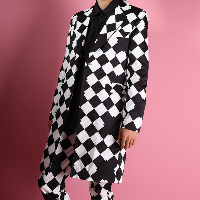 Hippopotamus big rhombus geometric vision mid-length suit trendy male Korean version slim suit long repair suit dress