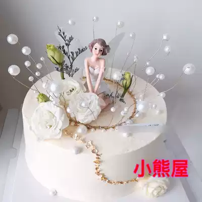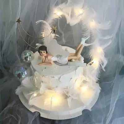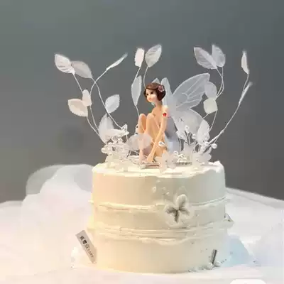 Net celebrity little fairy dancing ballet girl flower fairy cake decoration decoration angel feather baking plug-in
