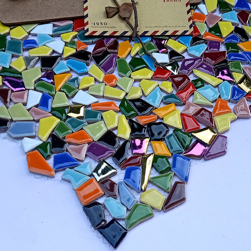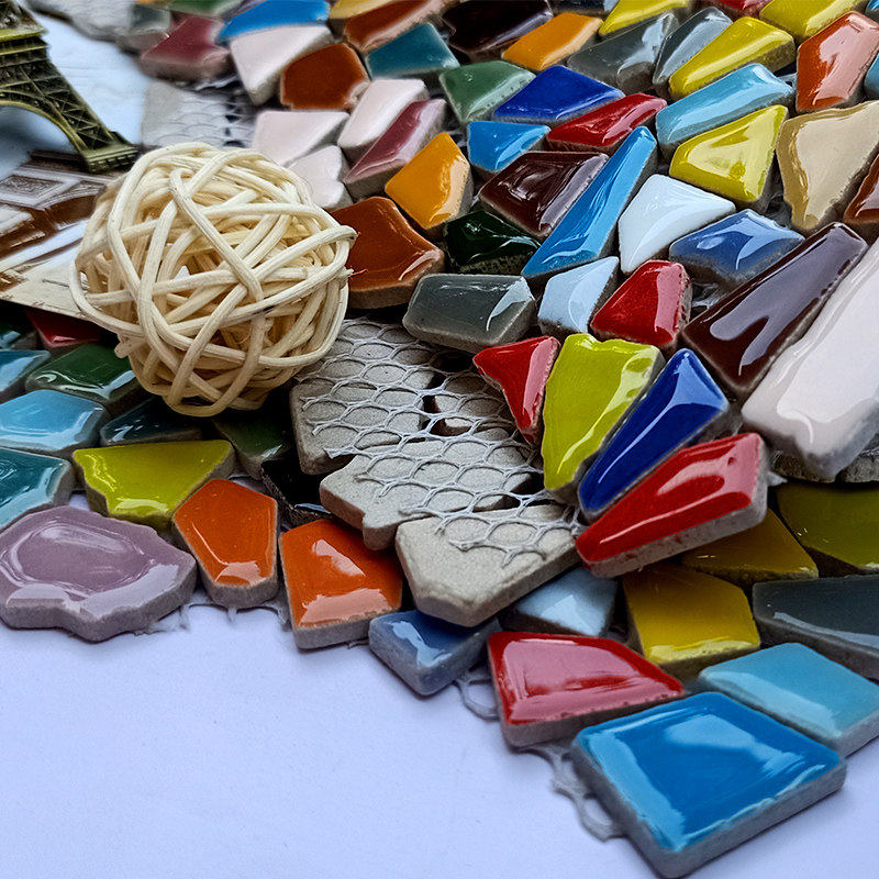Ceramic Mosaic Profiled Small Pieces Irregular Seven Color Plated Phantom Jigsaw Puzzle Background Wall Tile Free Stone Color