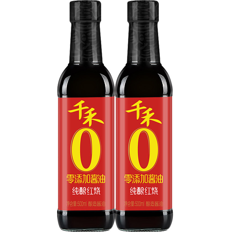 Qianhe Soy Sauce zero addition pure brewed braised 500ml * 2 bottles without monosodium glutamate, iodine-free Premium dark soy Sauce condiment